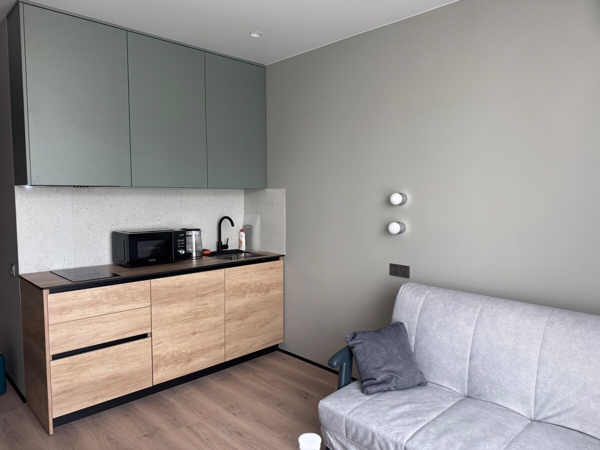 Notre logement est conçu pour un séjour confortable. Il est situé dans une nouvelle maison élégante avec un intérieur moderne, une connexion Wi-Fi rapide, la climatisation et un recirculateur d'air, et une salle de bain élégante, avec un sèche-cheveux et un sèche-serviettes électrique. L'appartement dispose d'une grande de 43 pouces, d'un four à micro-ondes, d'un ensemble de thé, d'un ensemble de vaisselle, d'un réfrigérateur avec congélateur, de peignoirs, d'ensembles hygiéniques, de savon, de shampoing.