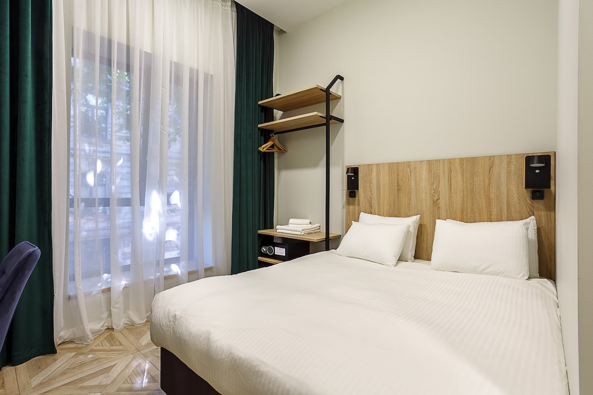 Une chambre moderne d'une chambre avec un balcon et une vue sur la ville. Une occupation simple ou double possible est adaptée aux fumeurs. Le nombre de chambres de cette catégorie peut aller jusqu'à 21 m ². Des lits confortables avec matelas orthopédiques vous permettront de dormir confortablement. Et comme on dit , une bonne nuit de sommeil est la clé du succès. La chambre dispose d'un système de climatisation et de chauffage. En outre, la taxe de séjour est payée à l'arrivée - 32,50 UAH par personne par jour.