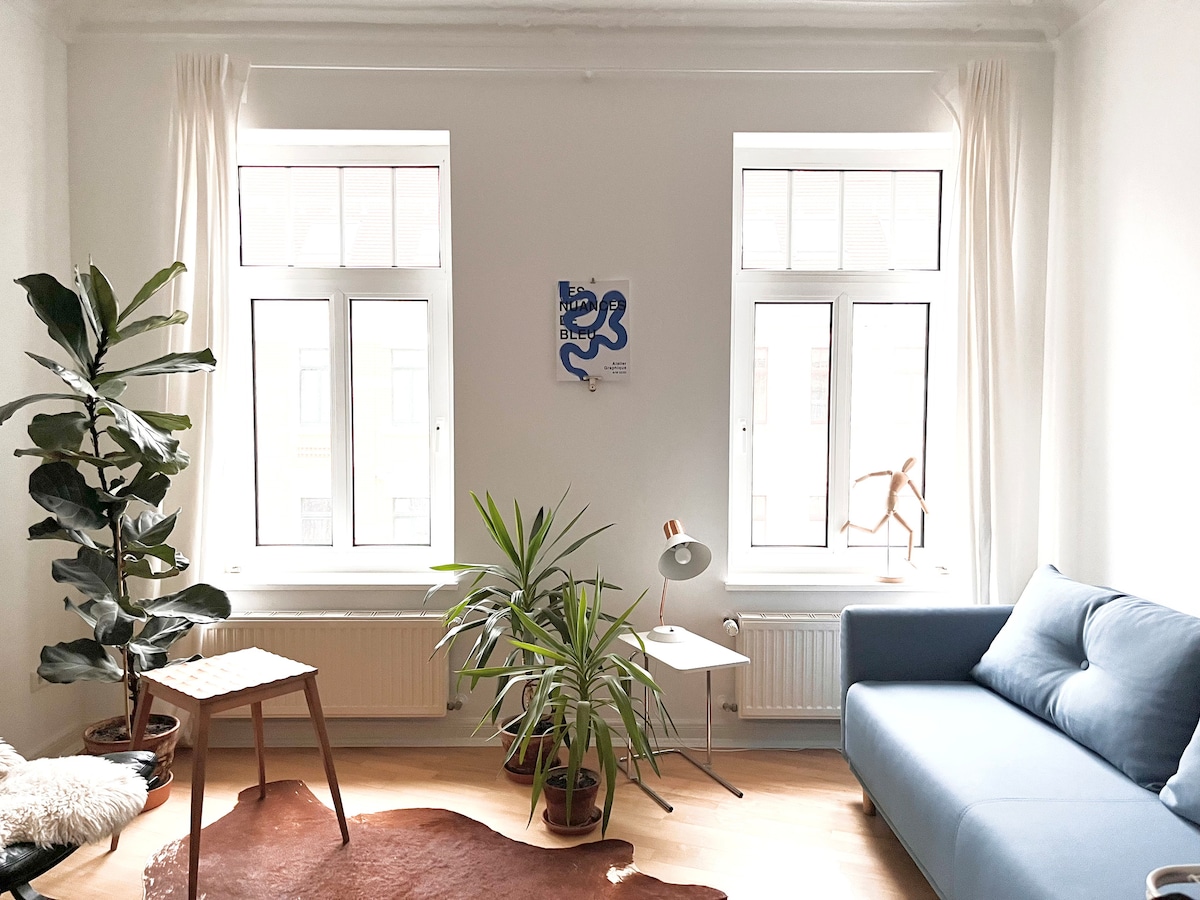 Cet appartement récemment meublé au dernier étage (5e étage), sans ascenseur, est un havre de paix dans le cœur palpitant de la ville de Leipzig, entre le centre sud et la banlieue sud, ouvrant un royaume plein de délices culinaires et de vie magnifique. À quelques pas du charmant arrêt « Karli » et du prochain arrêt de tramway, et à quelques pas du parc Clara et du centre-ville. Le lac Cospuden n'est qu'à 25 minutes à vélo. Bienvenue au paradis !