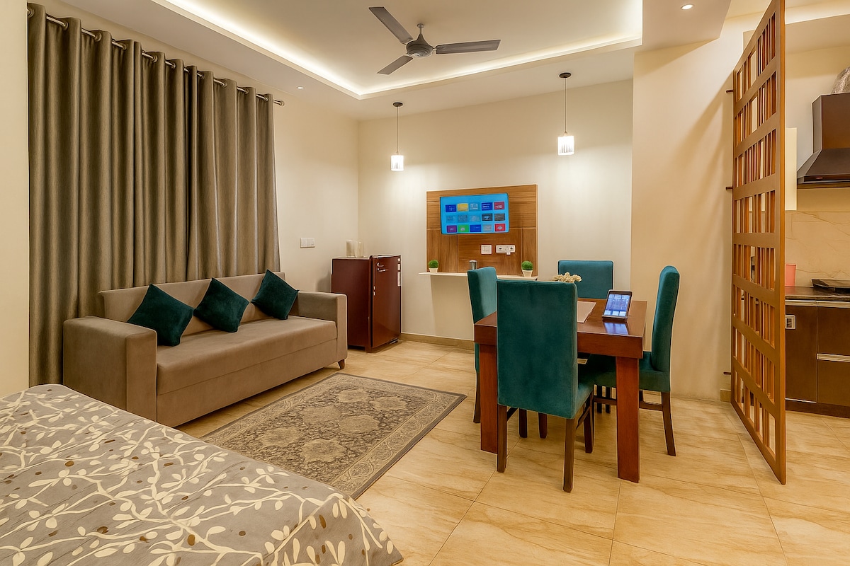 The Cozy Key – Relax, Rest & Recharge Spacious, stylish studio on Oxford Street, Zirakpur. Enjoy a comfy sofa, dining area, smart TV, fridge, Wi-Fi, spotless washroom, and fully equipped kitchenette with utensils & basic masalas. Perfect for couples, families, or solo travelers seeking a refreshing, hassle-free stay with a warm, inviting vibe.