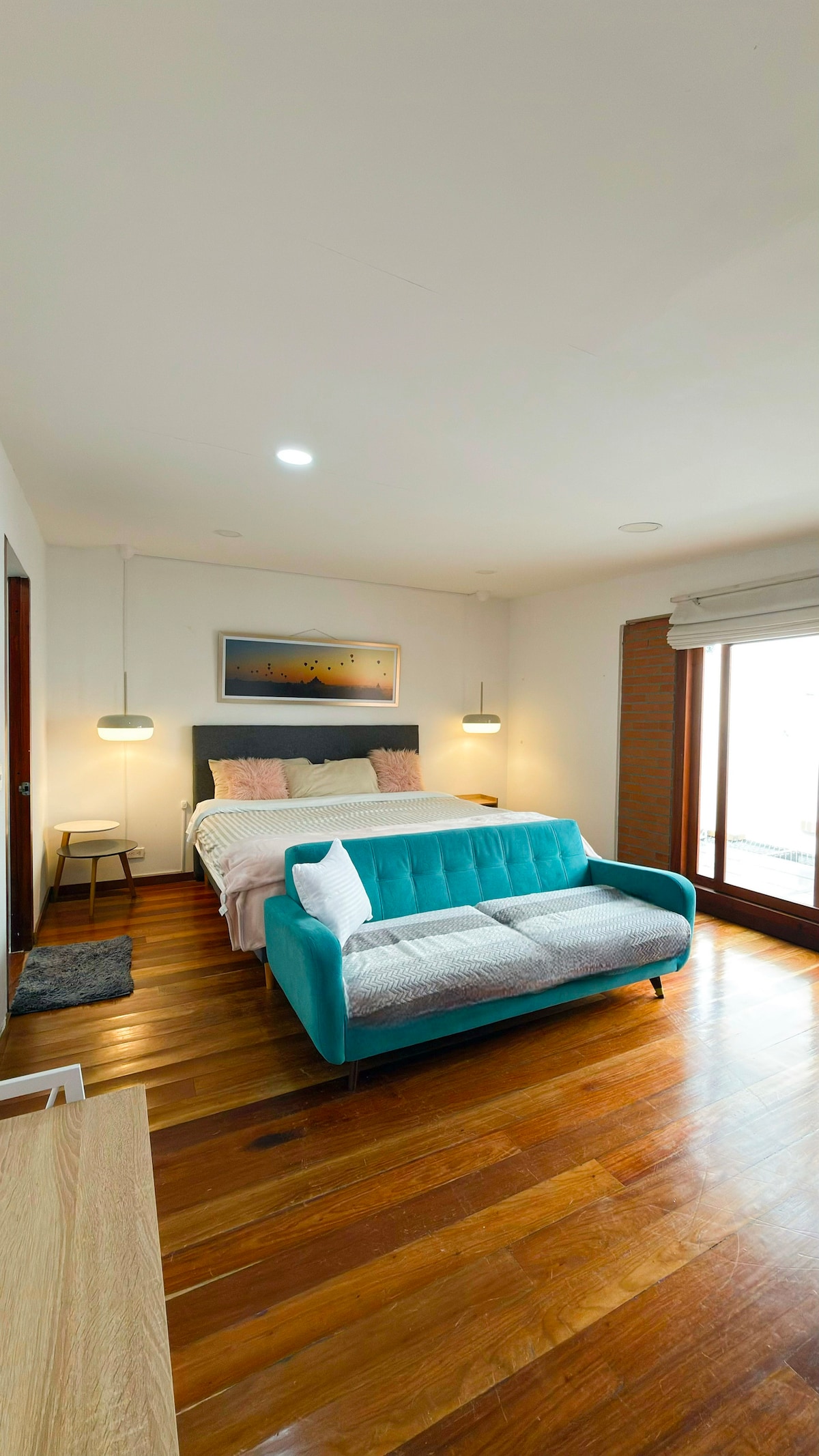 Disfruta de Bogotá desde el Penthouse Casa Agu, un apartamento amplio y luminoso, perfecto para quienes buscan cercanía a la Embajada de Estados Unidos, el Centro Internacional y los principales museos. Ubicado en un sector seguro, este espacio ofrece comodidad y privacidad, ideal para viajes de negocios o placer. Con decoración moderna, cocina equipada y amplias habitaciones, aquí encontrarás el equilibrio perfecto entre lujo y practicidad.
